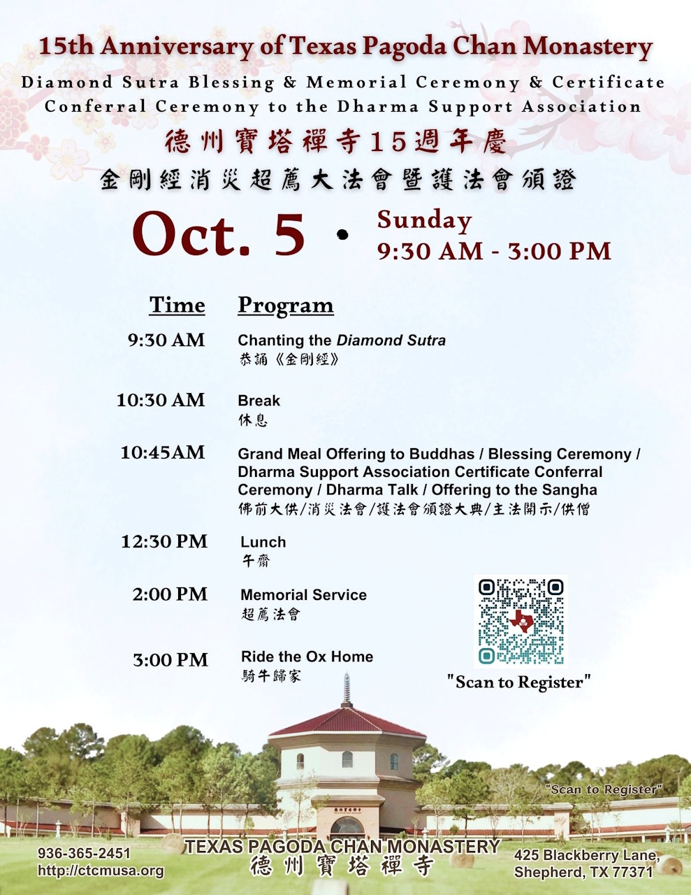 🤗 Join Us for the 15th Anniversary of Texas Pagoda Chan Monastery