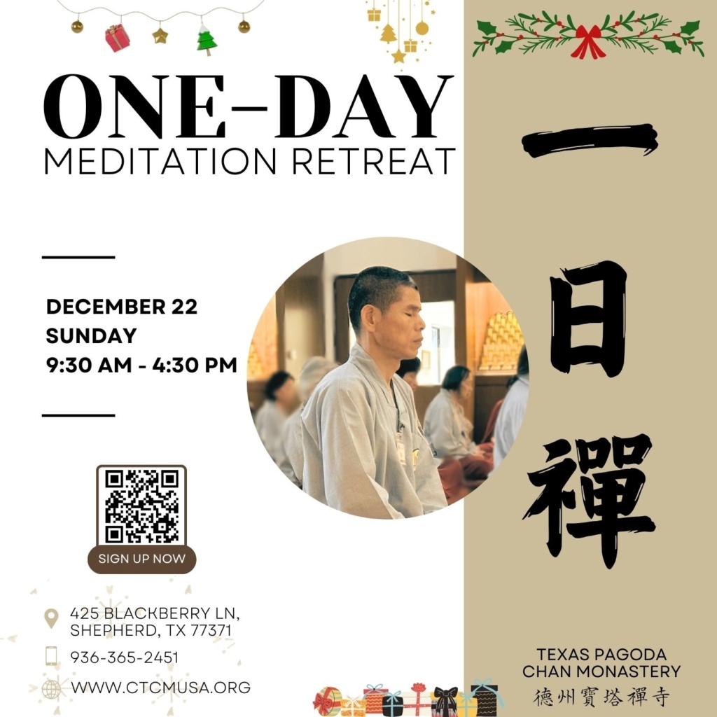 Welcome to register for the Texas Pagoda One-Day Meditation Retreat on 12/22 (Sunday). To register, please click on the link: https://forms.gle/ptzkA4dyHssfQya48
