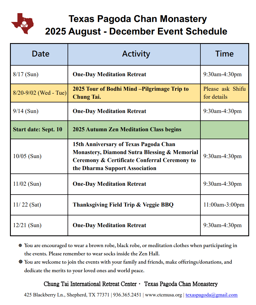 Texas Pagoda Chan Monastery – 2025 Meditation Class Level 1B