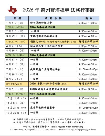 2026 德州寶塔禪寺 — 春季中文禪修班 一月九日(週五)開始上課!